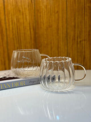 2er Riffle Cup Pumpkin Tasse mit Henkel Borosilikatglas 400ml