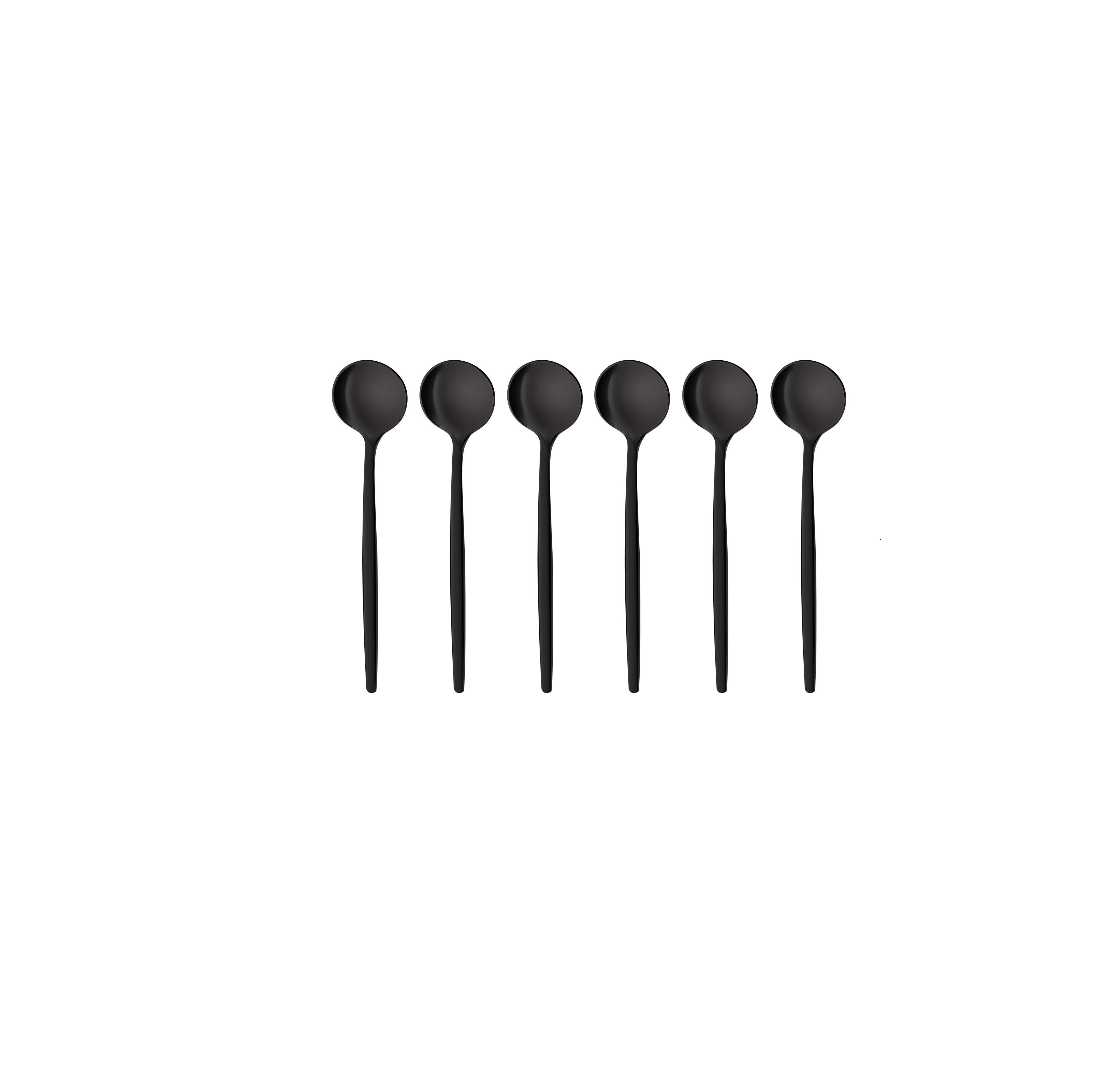 Das 6er Teelöffel-Set ist aus Edelstahl in elegantem Schwarz vereint Stil und Funktionalität. Perfekt für Tee, Kaffee oder Dessert – diese Löffel setzen einen modernen Akzent auf jedem Tisch.
