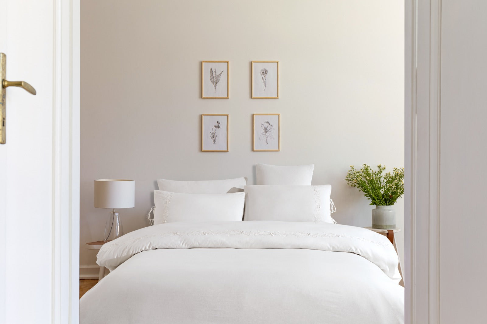 Das Bona Dea Ecru Bettwäsche-Set aus 100 % reiner Baumwolle kombiniert schlichte Eleganz mit hohem Schlafkomfort. Die weiche, atmungsaktive Baumwolle sorgt für ein angenehmes Hautgefühl und schafft eine ruhige, natürliche Atmosphäre im Schlafzimmer.