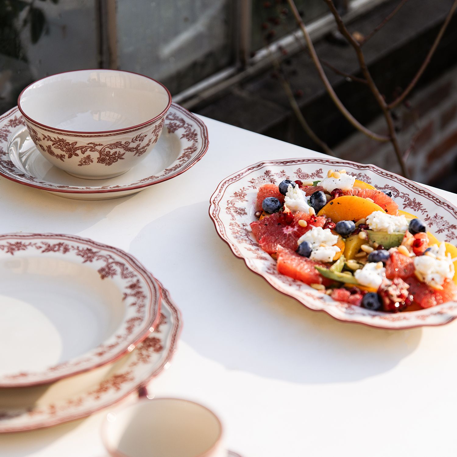 Servieren Sie Ihre kulinarischen Kreationen in der 15 cm großen burgunderroten Schale aus der Cyril-Kollektion. Das Porzellandesign verfügt über eine nicht-reaktive Glasur, ideal für Suppen oder Salate. Dieses Stück verleiht jedem Esstisch eine nostalgische und zugleich moderne Note.