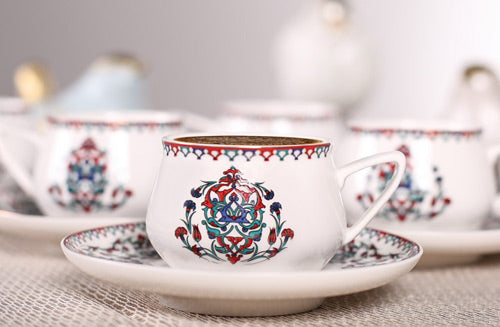 Elegantes 6er-Mokkatassen-Set Nakkas aus feinem Porzellan im edlen Design von Karaca, ideal für stilvollen Kaffeegenuss.