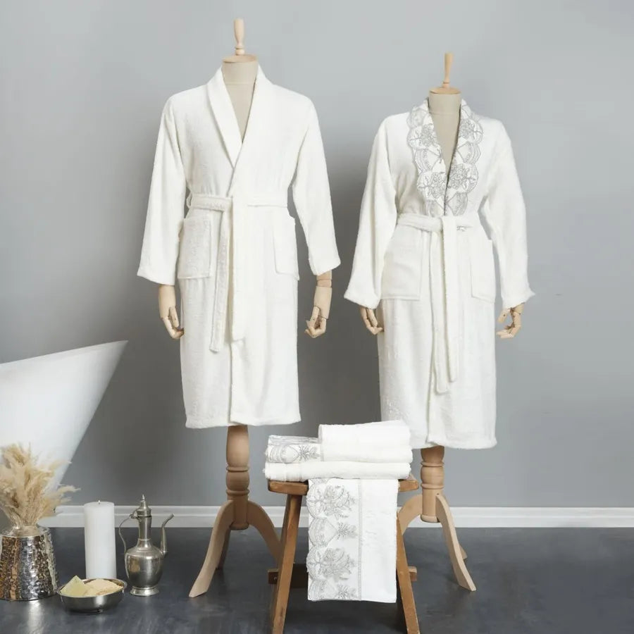 Karaca Home Monique Silber Französisch Spitze Bademantel Set