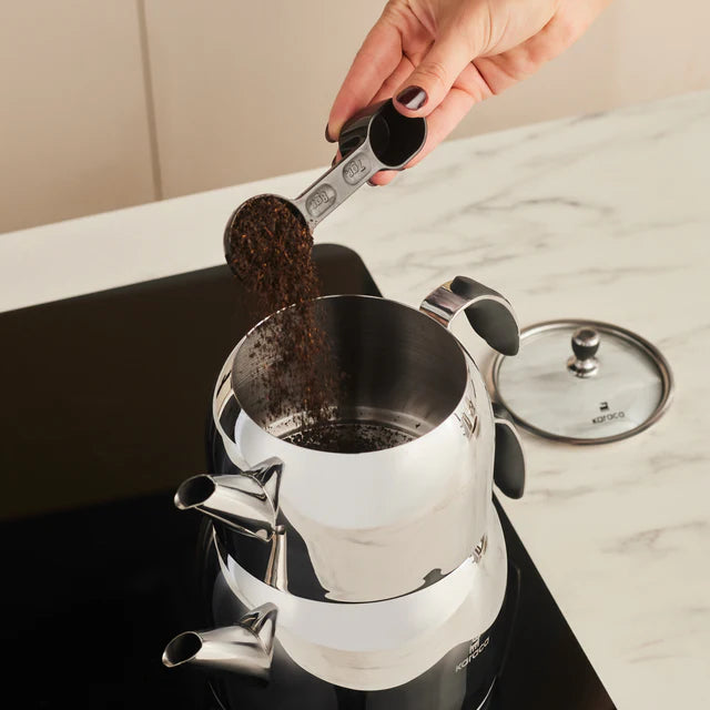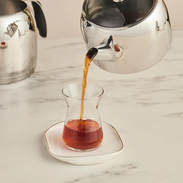 Die Karaca Stelly Teekanne aus hochwertigem Edelstahl (S/S 304) vereint Funktionalität und modernes Design. Mit einem unteren Kessel (1 L) und oberen Kessel (2 L) ist sie ideal für die Zubereitung von Tee für Familie und Gäste. Glasdeckel, spülmaschinengeeignet und kompatibel mit Induktionskochfeldern.