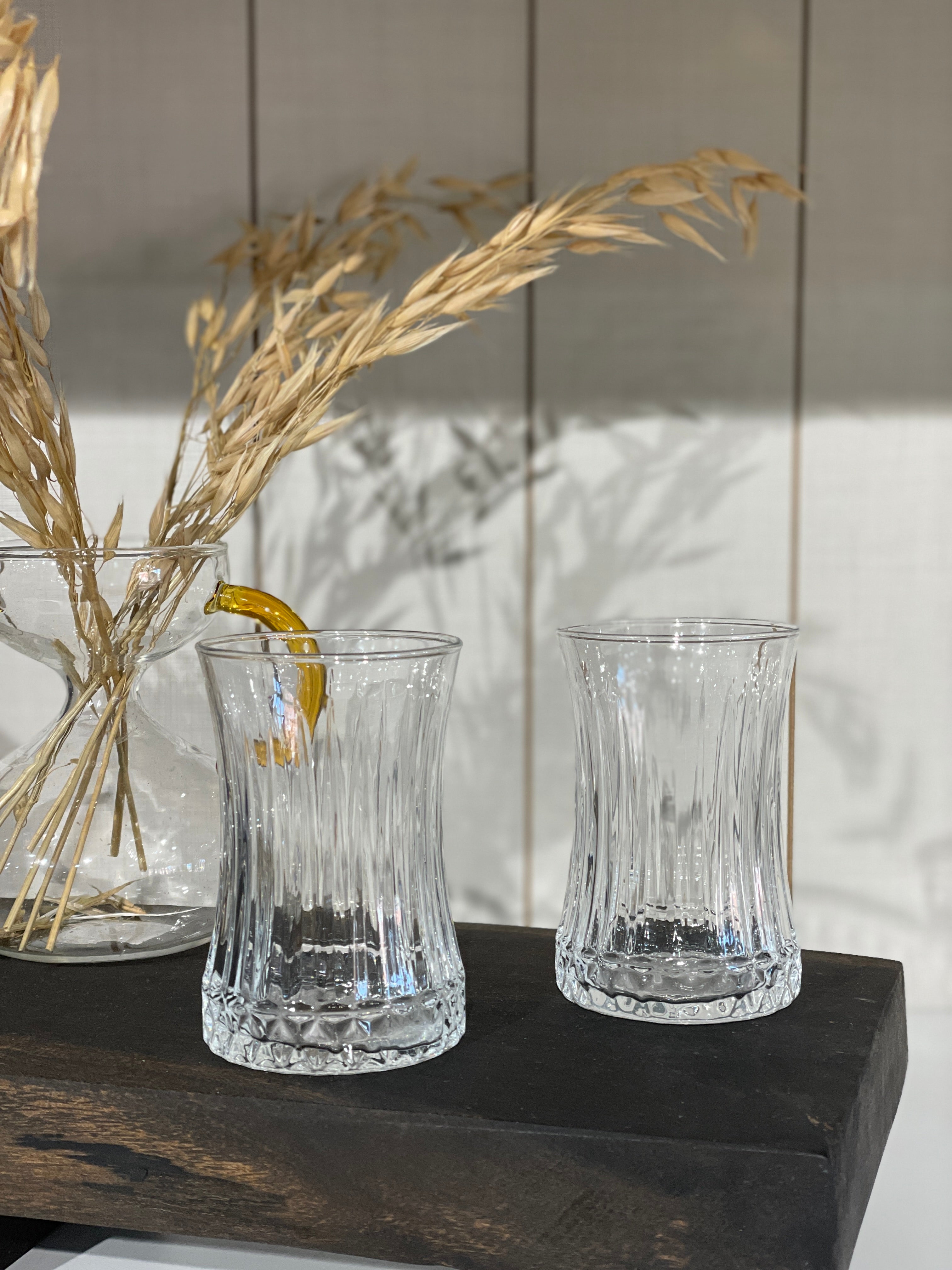 Das Pasabahçe Elysia Teegläser 6er Set besteht aus sechs eleganten, tulpenförmigen Gläsern mit 170 ml Fassungsvermögen, die dank gehärtetem Glas hitzebeständig und spülmaschinengeeignet sind.