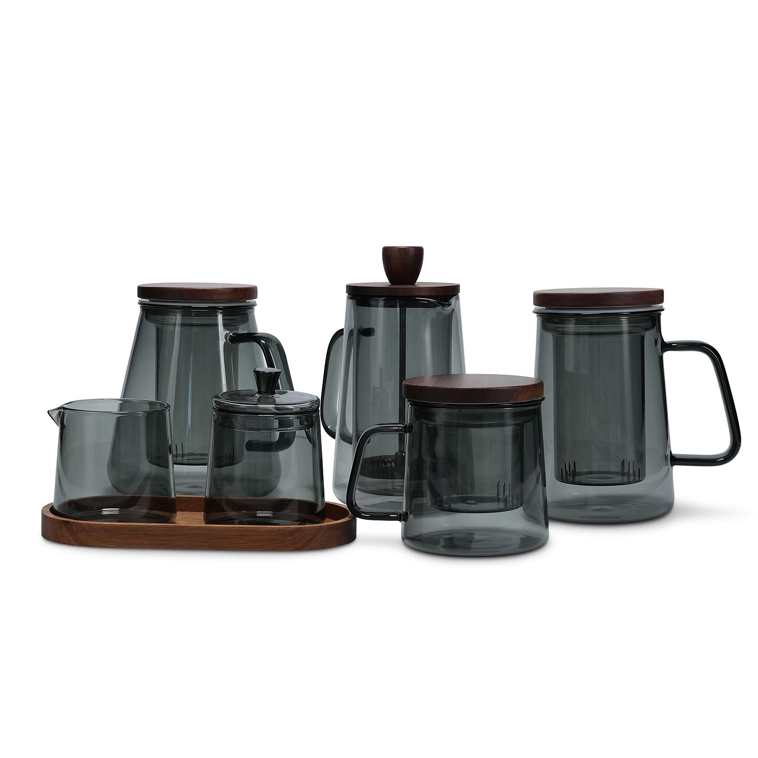Gefertigt aus hochwertigem Glas und veredelt mit dezenten Holzakzenten, verbindet dieses Duo zeitlose Eleganz mit funktionaler Schlichtheit.
