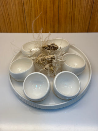 Bondy Beige Dipschälchen Set mit Holzplatte- Seidenbeige