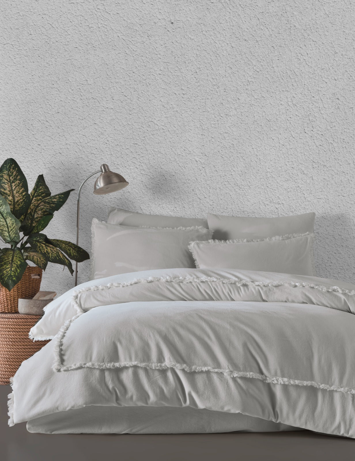 Das Maddax Dark Ecru Bettwäsche-Set aus 100 % hochwertiger Baumwolle kombiniert zeitlose Eleganz mit natürlichem Komfort. Die weiche, atmungsaktive Baumwolle sorgt für ein angenehmes Schlafklima und verleiht deinem Schlafzimmer eine warme, stilvolle Note.