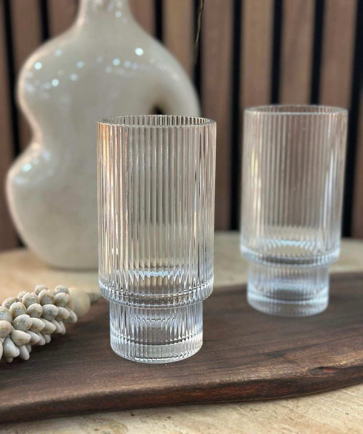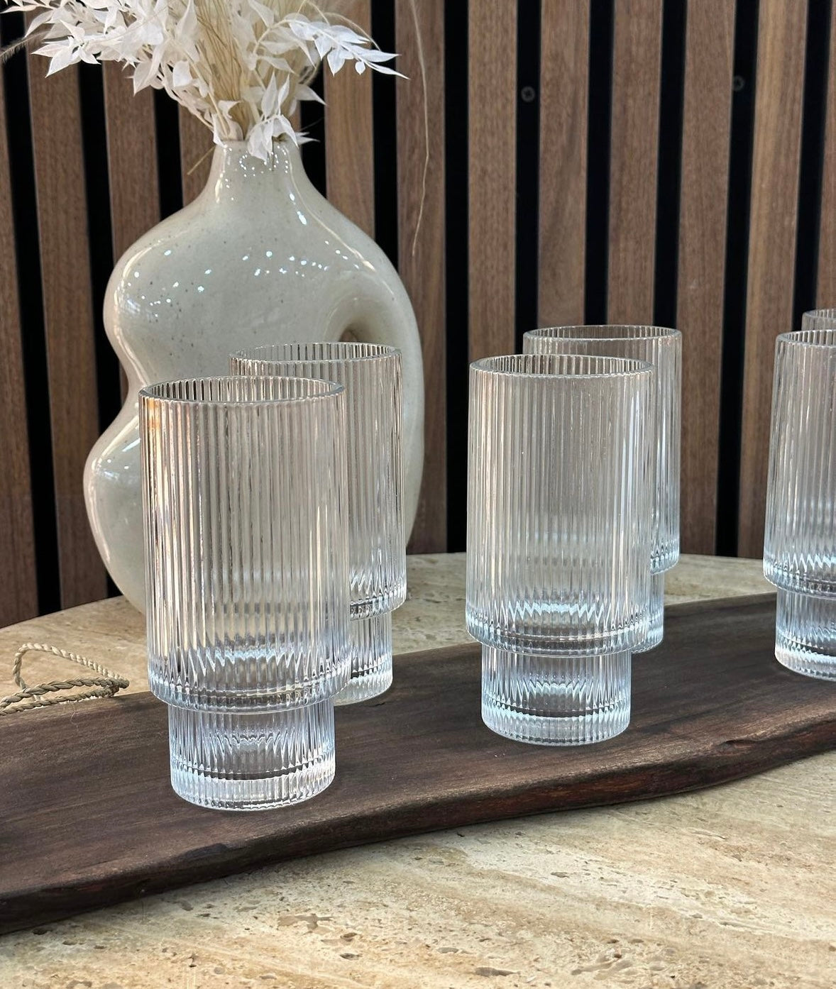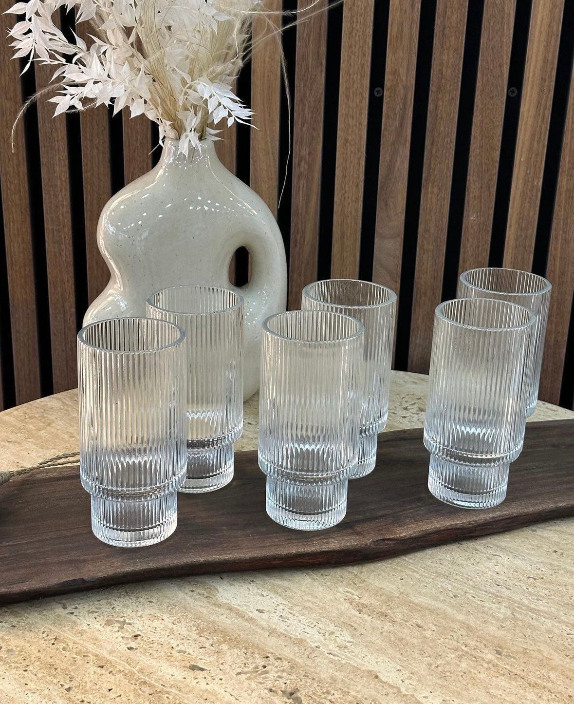 Elegantes 6er-Set Longdrinkgläser mit stilvoller Relief-Struktur – ideal für erfrischende Drinks, Cocktails oder Wasser in hochwertiger Optik.