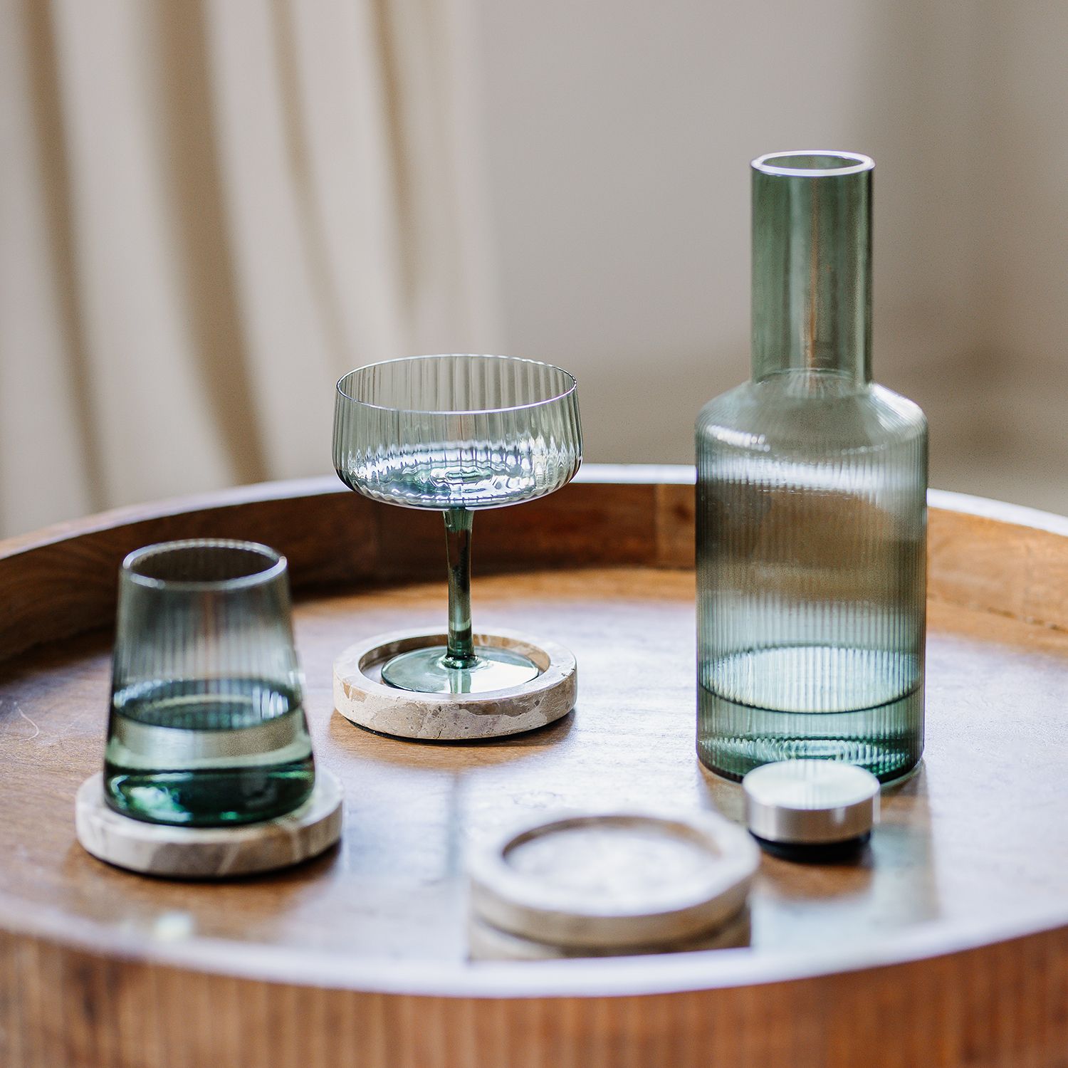 Elegantes Champagnerglas in Dunkelgrün aus der Ray-Kollektion. Die gerippte Textur verleiht jedem Anlass eine edle Note – perfekt für stilvolle Feiern und besondere Momente.