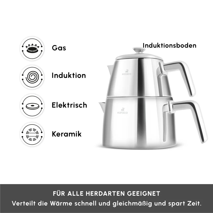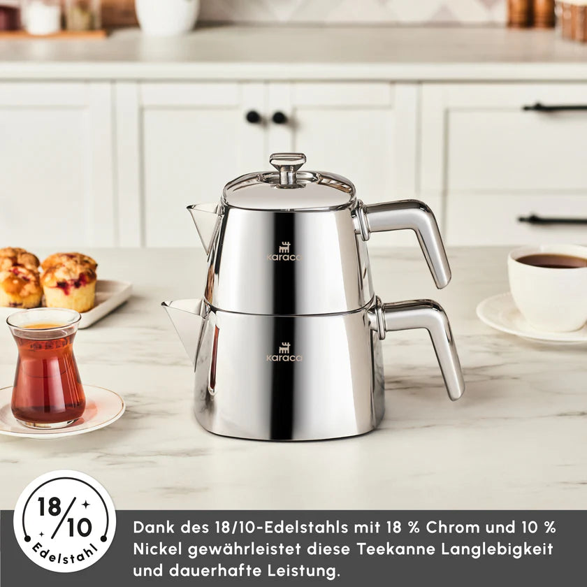 Das Karaca Brewinox Large Teekannen Set überzeugt durch modernes Design und hochwertige Verarbeitung aus robustem Edelstahl S/S 304. Die glänzende Oberfläche verleiht der Teekanne eine zeitlose Eleganz und macht sie zum stilvollen Blickfang in jeder Küche.