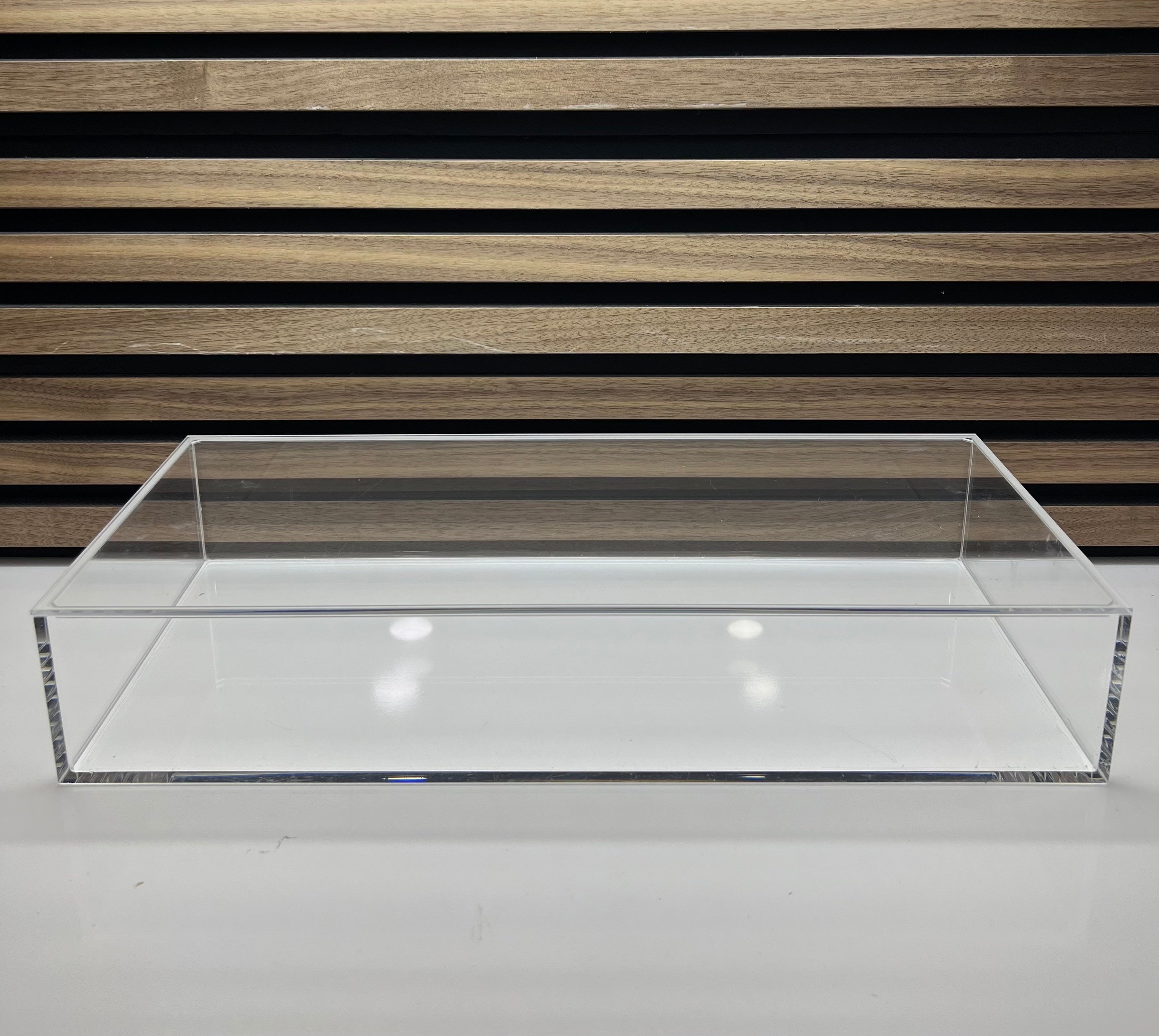Die Acrylbox mit Deckel überzeugt durch ihr klares, modernes Design und eignet sich ideal zur stilvollen Aufbewahrung und Präsentation verschiedenster Gegenstände.