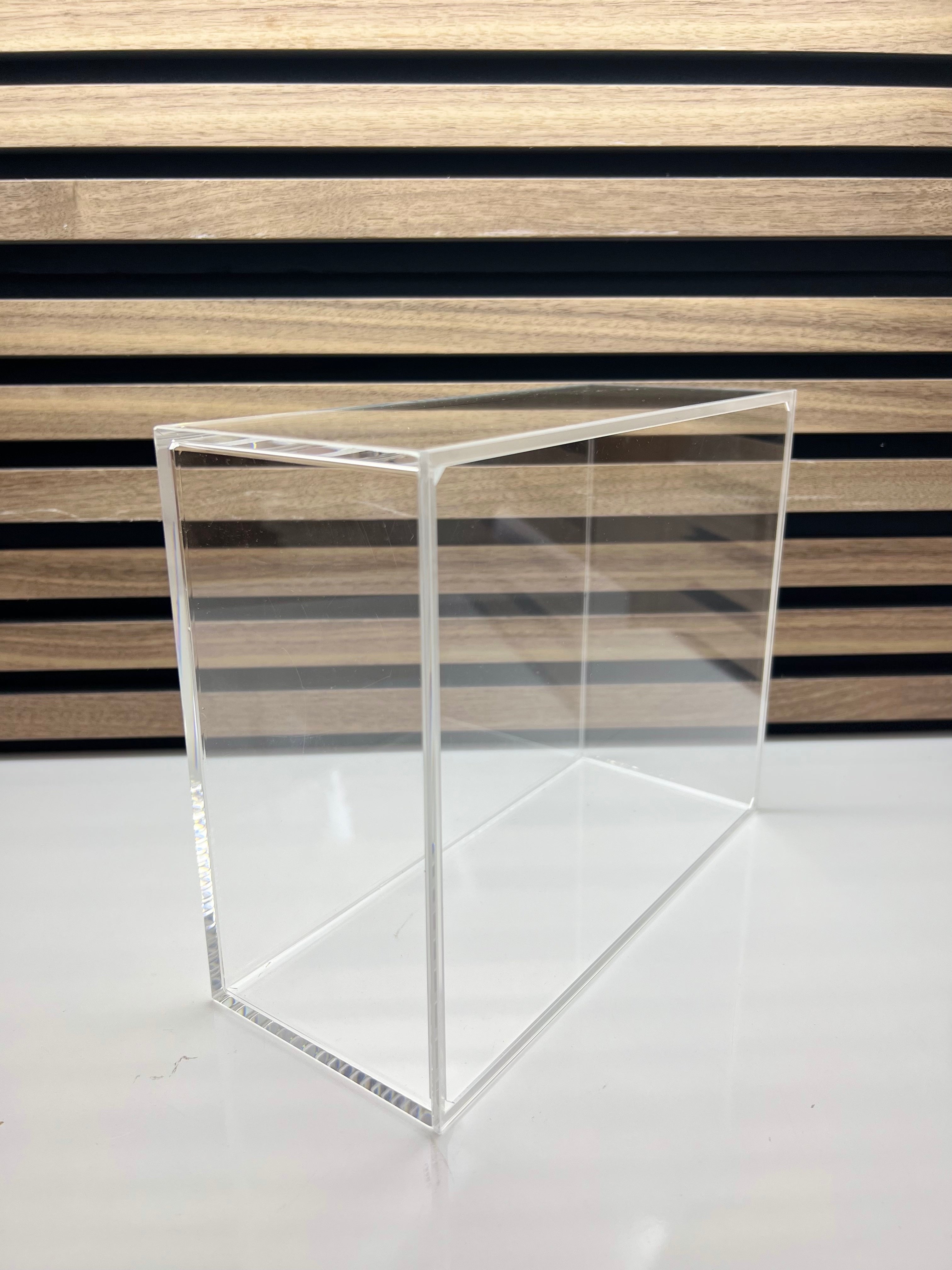 Die Acrylbox mit Deckel überzeugt durch ihr klares, modernes Design und eignet sich ideal zur stilvollen Aufbewahrung und Präsentation verschiedenster Gegenstände.